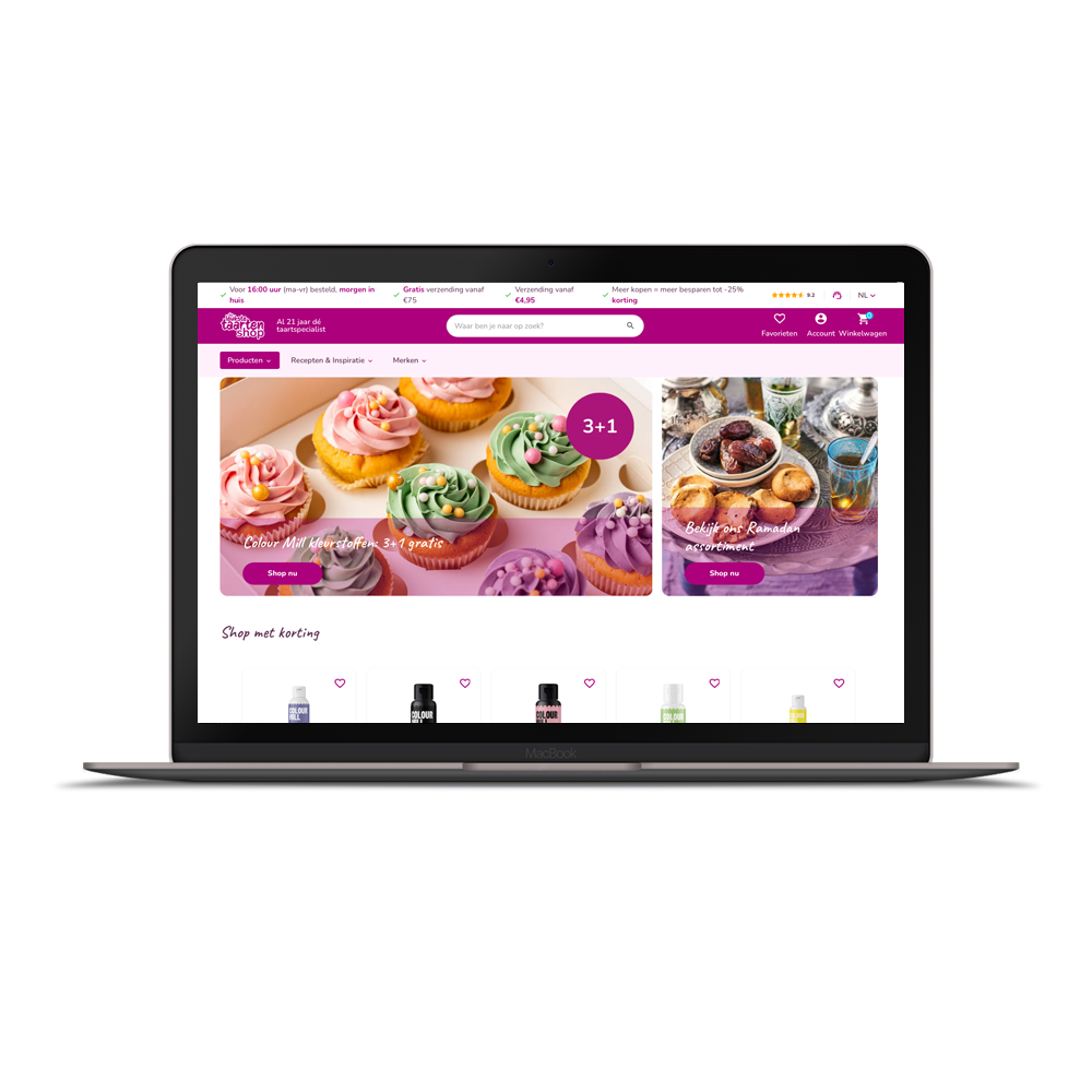Met de focus op onze webshop zijn wij continu aan het groeien. Op onze website vind je een breed scala aan ingrediënten, decoraties, bakgereedschappen, verpakkingen, versieringen en themaproducten. Ook vind je bij ons de lekkerste recepten. Je bestelt producten en kiest meteen een heerlijke traktatie uit om te maken.